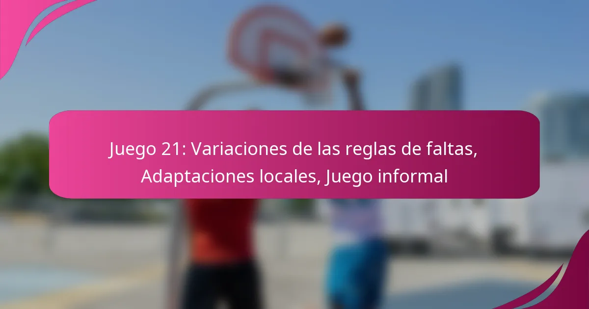 El Juego 21 tiene varias adaptaciones locales respecto a las reglas de faltas que reflejan las preferencias de la comunidad y las influencias culturales. Estas adaptaciones pueden impactar significativamente el juego, haciendo esencial que los jugadores comprendan las reglas específicas en su área.